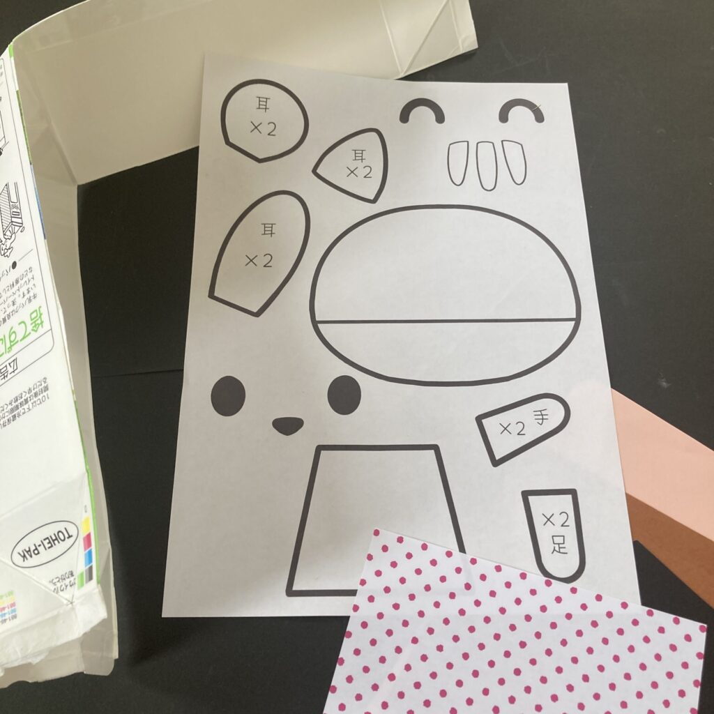 型紙を使って、耳・手・足・顔などのパーツを切ります。